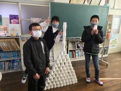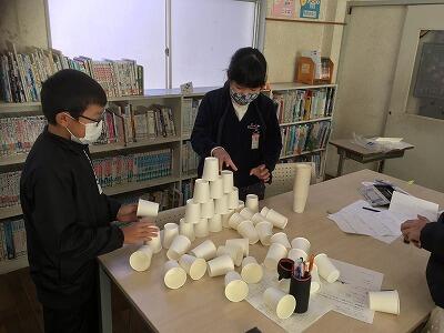 12月1日(火)に3・5年生はアクティビティーを実施しました。個人で考えたあと、チームで話し合い、紙コップタワーを制限時間内にどれだけ高くできるかを競いました。