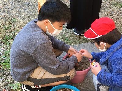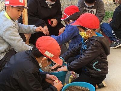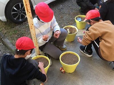 12月7日(月)、昼休みに全校児童でチューリップの球根を植えました。寒さをを乗り越え、立派な花が咲くのを楽しみに待っています。新型コロナ感染症も、みんなで3密を避け、感染拡大が止まり、楽しい春が来ることを祈っています。