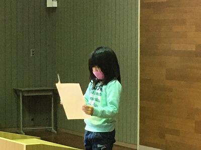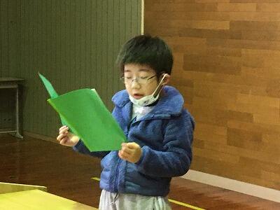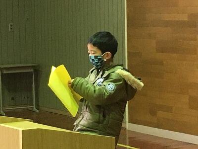 12月24日(木)に終業式がありました。1年生3人から2学期の取組について素晴らしい発表がありました。堂々と元気よく発表するすることができました。