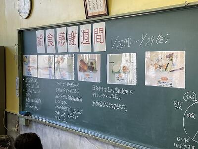 1月25日(月)から給食感謝週間をでした。給食時間に給食の歴史、クイズ、意義等について考えたり、給食関係の皆様への感謝の色紙を作成したりしました。