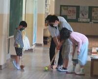 グランドゴルフ大会は、あいにくの雨でしたが、校舎内のコースを周り、交流を深めることができました。ホールインワンなどの好プレイが続出し、珍プレイもありで、和気藹々と大会が終了しました。