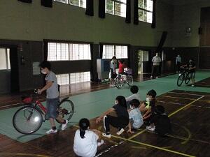 延岡地区交通安全協会から、4名の交通指導員の方々にご来校いただき、講話と演習をお願いしました。前半は、2教室(1・2年教室:1・2年生と6年教室:3~6年生)に分かれての講話でした。1・2年生は、横断歩道の正しいわたり方について、3~6年生は、自転車の正しい乗り方についての内容でした。後半は、場所を体育館に移し、設置された模擬交差点を利用しての演習でした。
