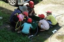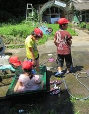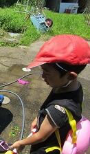 ポンプ車からの放水も体験しました。