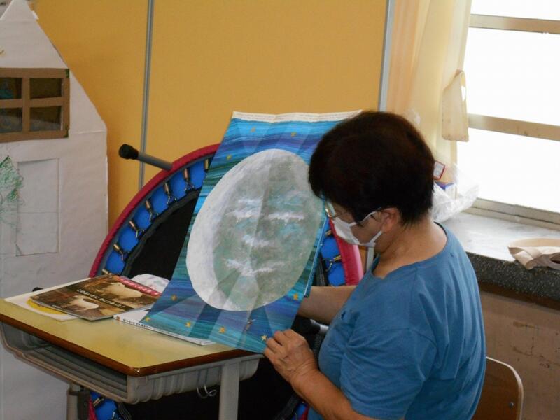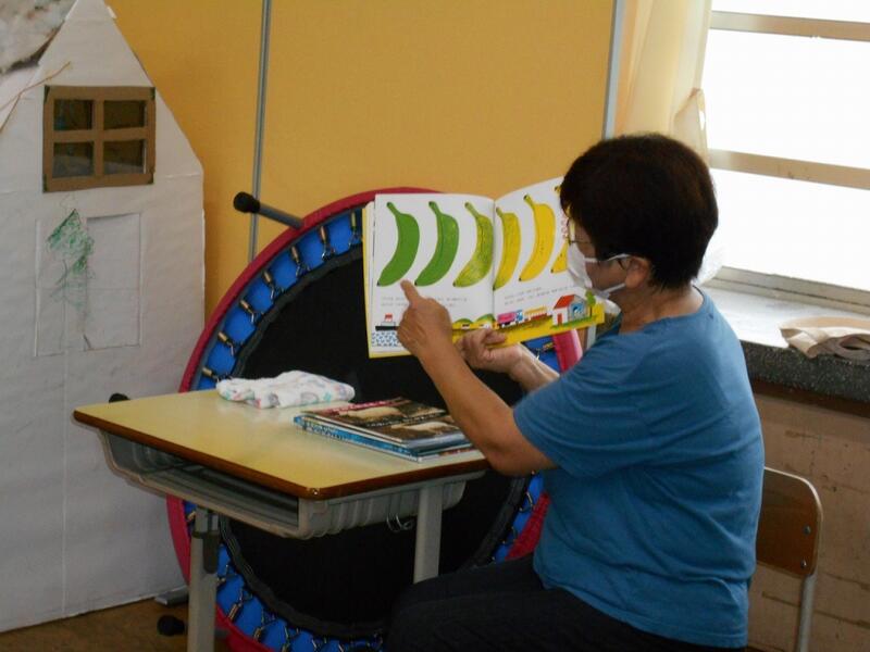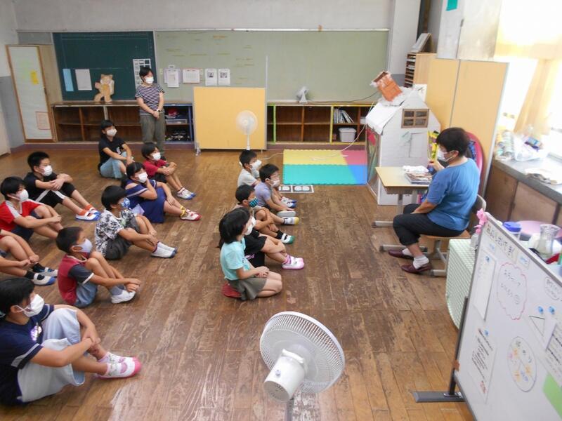 また、「パパ、おつきさまとって!」〈エリック・カール著〉のお話を目を輝かせながら聞いていました。2学期もいい本にたくさん巡り会えることを期待します。