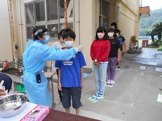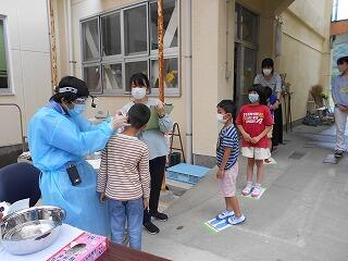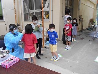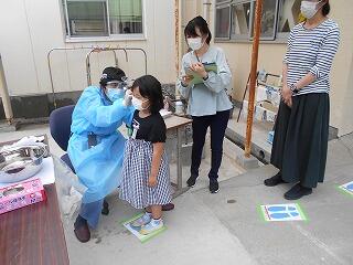 5月26日(木)、今日は耳鼻科検診の日でした。新型コロナウイルス感染防止対策として、体育館通路で実施しました。