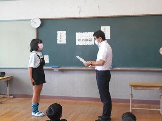 まず、児童作文発表。児童代表の2年生が、1学期頑張ったことを堂々と発表しました。