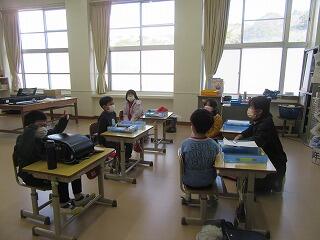 2・3年生の帰りの会。今日の一日の振り返りをしました。「できたこと」や「がんばったこと」を中心に、 先生や友だちと語り合いました。