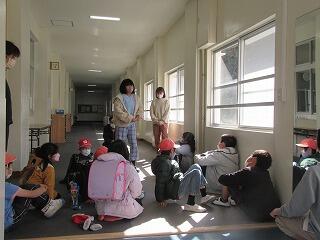 今回は、家庭科室から出火したとの想定で、整然と運動場まで避難しました。