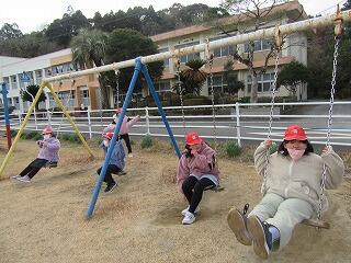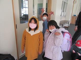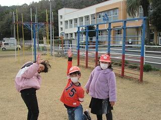 昼休み、粉雪がちらちらと舞う中、運動場で元気に遊ぶ子どもたちの姿が見られました。