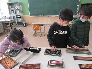 そろばんにもたくさんの種類があり、それらのそろばんに触れる経験ができました。とても大喜びの子どもたちでした。