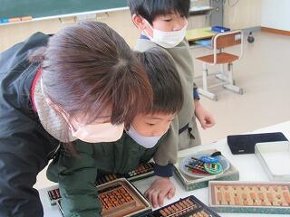 今日は、そろばん教室を実施しました。そろばん教室「旭珠友会」の今村先生が、今年も来校されました。
