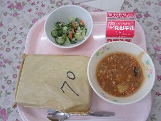 今日の給食のメニューは、リクエスト給食でした。名水小のみんなも大好きな「カレー」。その名も「キーマカレー」でした。
