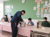 4・5年生は、北風のピューピューふく中、運動場でサッカーの学習です。軽やかなドリブルが光っている担任の姿が見られました。
