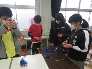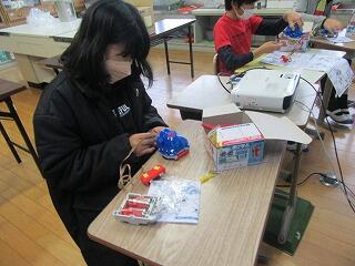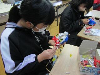 今日で、5年生の理科学習も、最後の1時間となりました。今日は、電磁石のまとめとして、教材を組み立てて動かす活動を行いました。 作製したのは「サッカーロボ」。友達といろいろなゲームを考え、楽しむことができました。