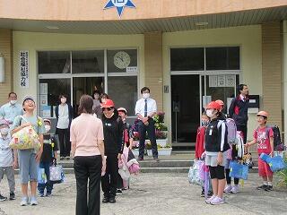 令和4年度授業日の最終は、みんなで大きな声で「さようなら」とあいさつをして、下校しました。