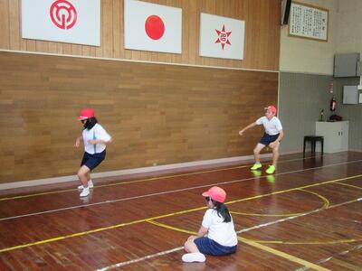 体育館に移動して、上体起こし、長座体前屈、立ち幅跳び、反復横跳び、握力、シャトルランを行いました。