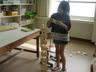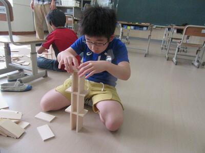 たくさんの木を使って、いろいろなものをみんなで夢中で作り上げていました。