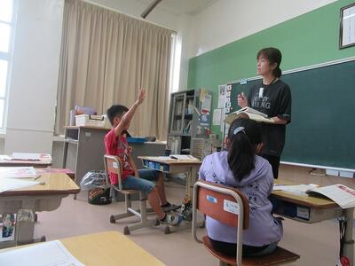 少人数でも意見を上手に引き出しながら授業を進めています。
