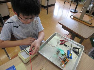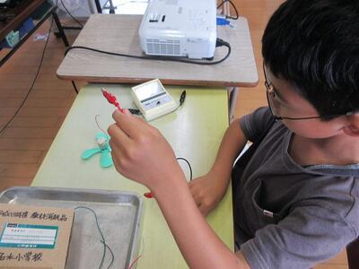 4年生理科。速くプロペラを回すには電池を増やせばよい」という仮説を実験で確かめました。