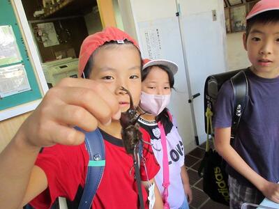 これは校長先生のご自宅でかえったオスです。(3年生が観察しているのは現在サナギ中!)