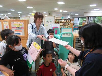 今日は市立図書館より司書の方が図書支援に来ていただきました。