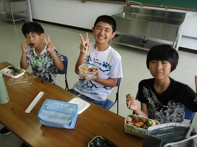 学習のあとはお楽しみのお弁当です。手づくりのお弁当もあってびっくり!