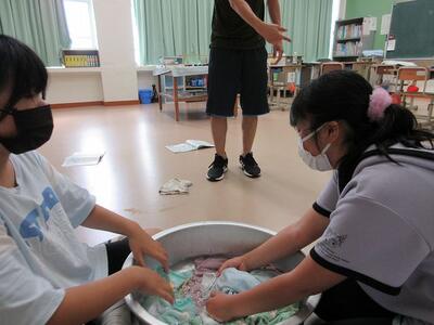 5・6家庭科。今日は手洗い洗濯の実習をしていました。