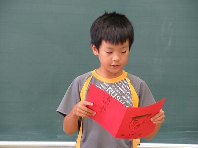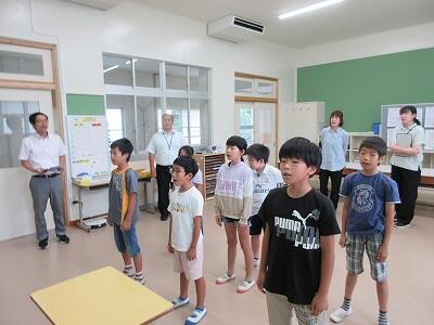 まず、児童代表で3年生男児が1学期に頑張った理科や水泳のことを立派に発表しました。