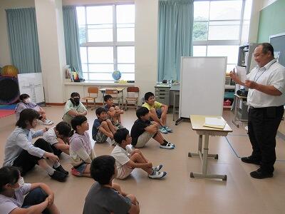 続いて校長先生のお話。子どもたちに夏休みのミッションを2つ与えてくださいました。おうちの人に1日1回「ありがとう」「がんばったね」「いいね」と言われるような行動をとること、想像力を生かして命を守ることの2つです。