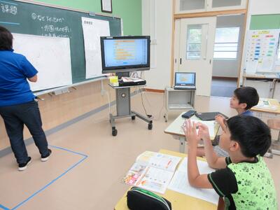 名水小でもタブレットが「文房具の一つ」として活用されています。