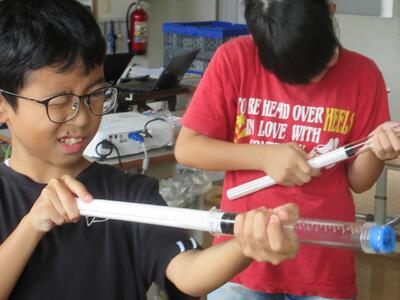 3年生理科「とじこめた空気」空気でっぽう登場!
