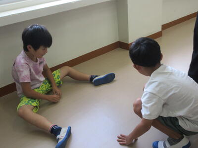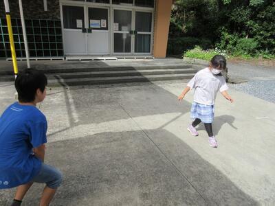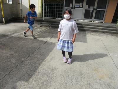 3年理科「かげと太陽」かげふみ遊びをして遊びました。