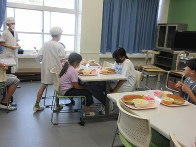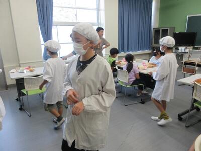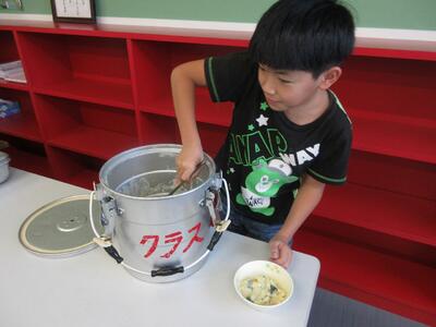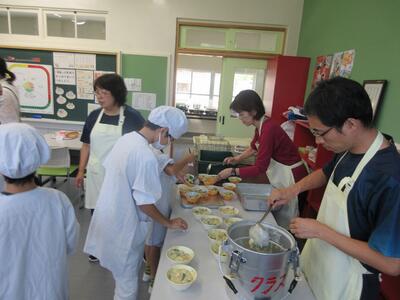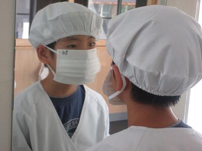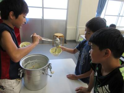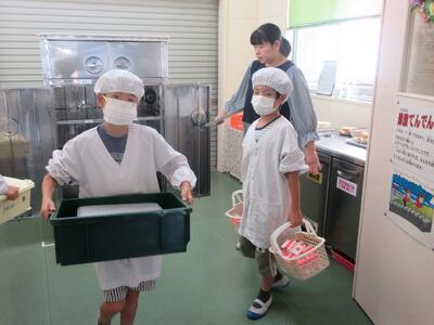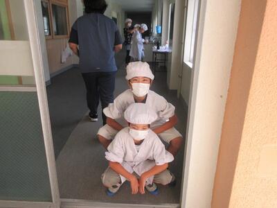 給食当番の様子。