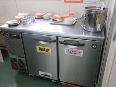土々呂小から給食が運ばれ、いったんここで保管されて給食当番がランチルームまで運びます。