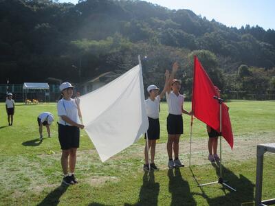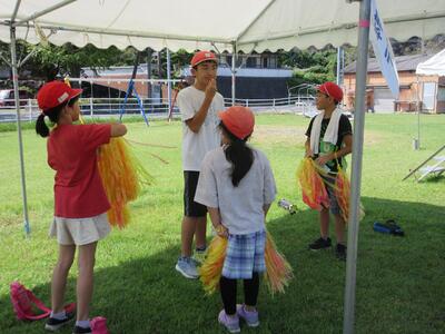 昼休みは運動場で応援練習。新しい応援のレパートリーも増えてきました。