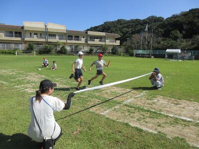 昼休みに各団分かれてリレー練習!