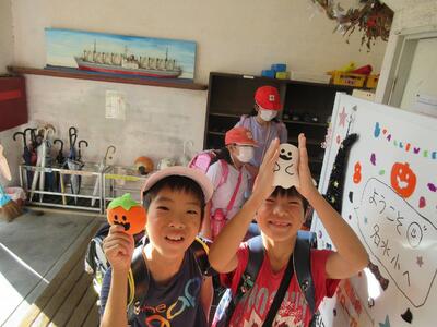 玄関がハロウィン仕様に♡ 子どもたちが大喜びしていました。
