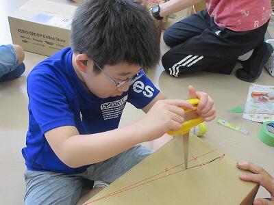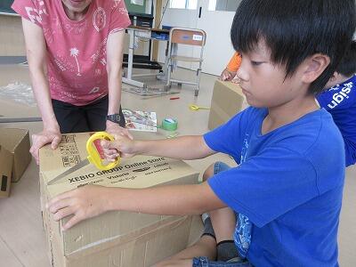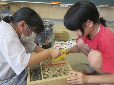 3・4年生図工・ダンボールを使っての箱作り。
