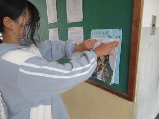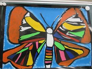 すてきな作品が飾られています。3年生ステンシル版画です。