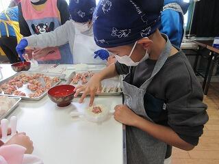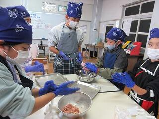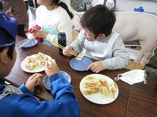 ブランドポークのおいしさを味わうために餃子づくりに挑戦です。