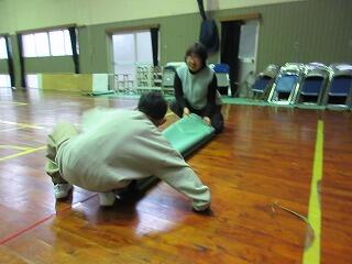 朝は卒業式で使ったシートをきれいにたたみました。