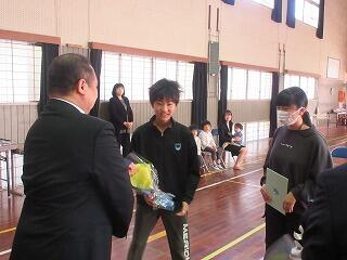 最後に花束と色紙を渡しました。