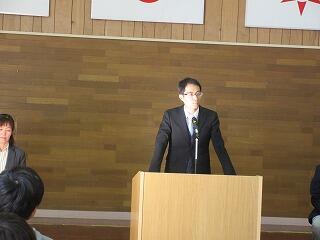 学校長式辞。心温まる式辞を述べられました。