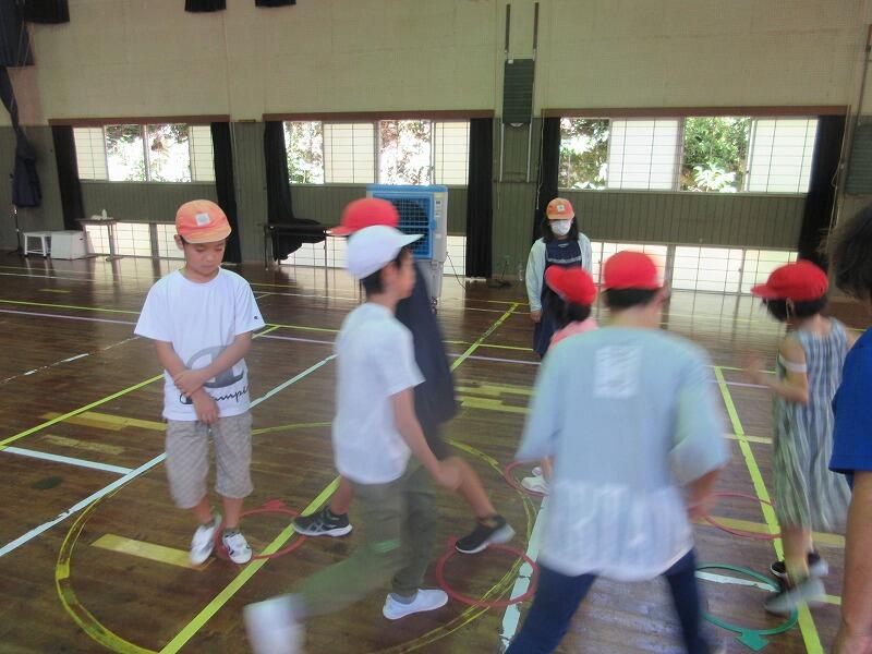「せーの!」のかけ声で縦・横・ななめに輪を移動しています。