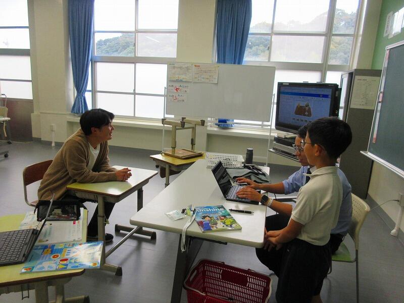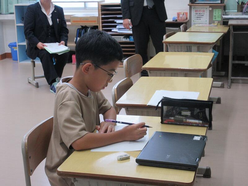 先日、市の教育委員会と県の教育委員会の職員が来校し、授業の様子を見てくださいました。