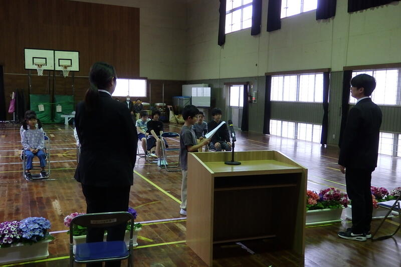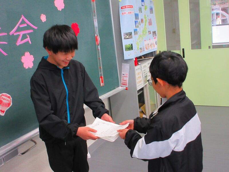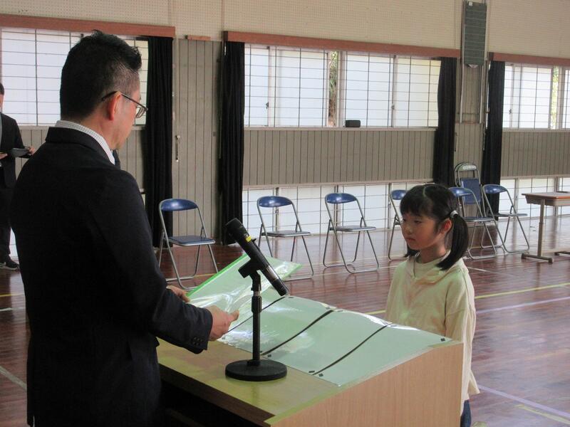 学年の代表者に修了証を授与しました。