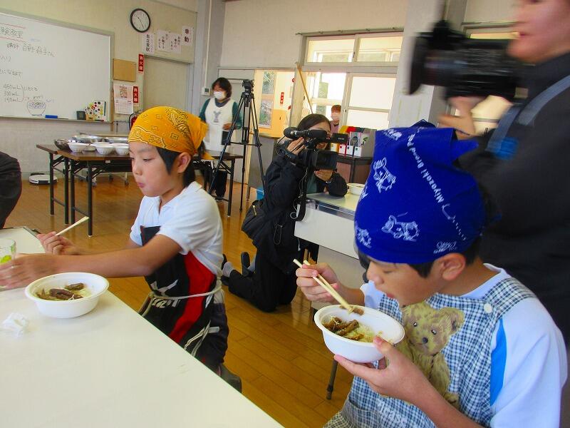児童の配膳の様子を参観したあと、一緒に試食しました。