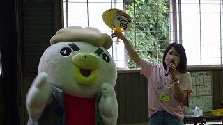今日は、7月8日。「チキン南蛮の日」ということで、「延岡発祥チキン南蛮党」と一緒にマスコットキャラクターの「チキなん番長」が来てくれました。