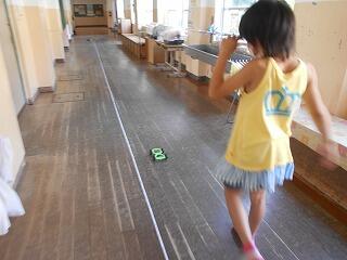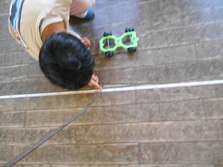 走った距離を、最小目盛り5cmで記録し、その記録したデータから、分かることについて、話し合いました。
