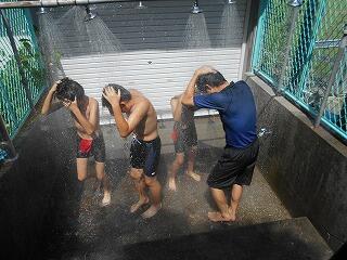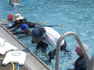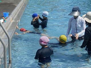 水温は、朝からすでに30℃超え。しかしながら、水の中は、やっぱり気持ちよく感じているようで、精いっぱいチャレンジする姿が見られました。